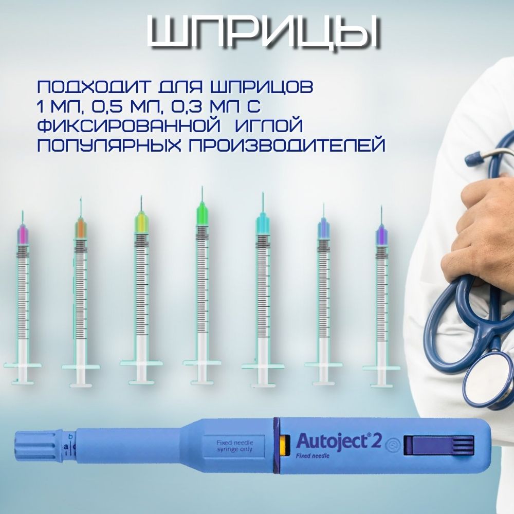 Инъектор автоматический Autoject 2 Fixed Needle AJ1300 для шприцев с фиксированной иглой )объемом 1,0 мл, 0,5 мл и 0,3 мл. (Автоджект) для инсулина