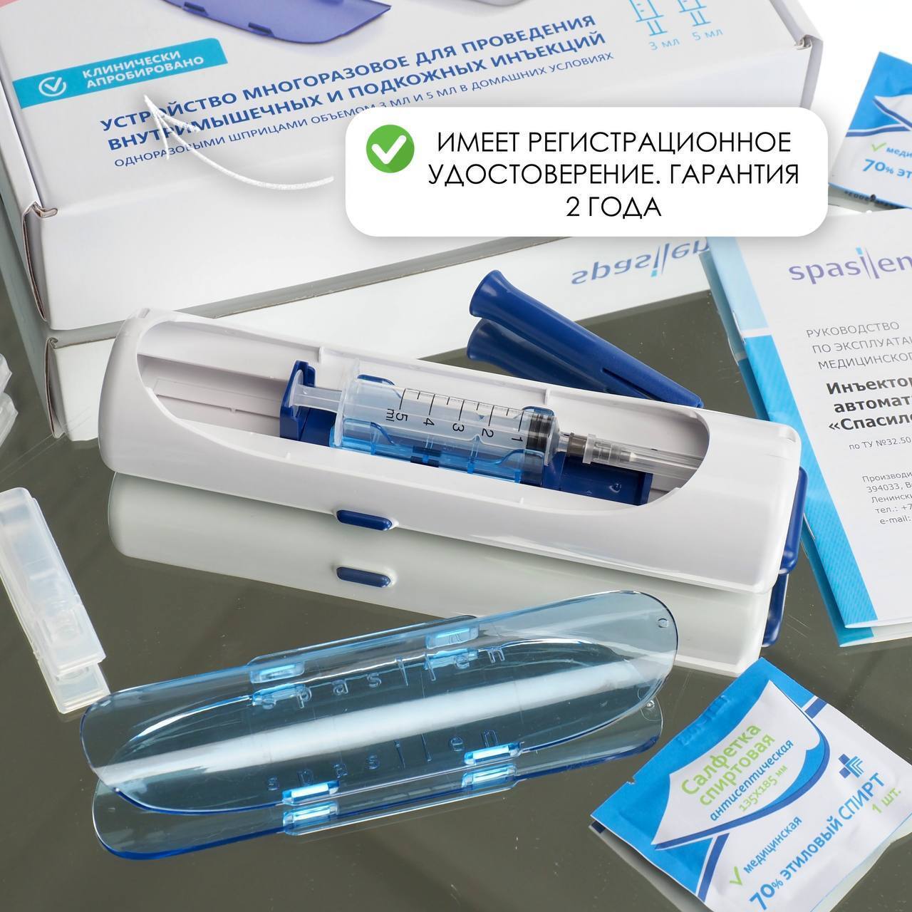 Текстовое описание изображенияТекстовое описание изображенияСпасилен сделает укол правильно!Автоинъектор Spasilen (Спасилен) создан, чтобы существенно уменьшить неприятные ощущения от уколов и сделать этот процесс более комфортным. Работа инъектора Спасилен автоматизирована и стандартизирована, поэтому обеспечивает правильное проведение инъекции, что значительно уменьшает болевые ощущения. Процедура всегда проводится с одинаковой скоростью, игла вводится под нужным углом и на необходимую глубину.Укол самому себе - теперь не проблема!Автоматический инъектор Spasilen (Спасилен) — устройство для самостоятельного проведения внутримышечных и подкожных инъекций одноразовыми шприцами объемом 3 и 5 мл. Иногда случается так, что нужно срочно сделать внутримышечные или подкожные уколы обезболивающего или другого препарата, но рядом нет никого, кто бы мог помочь. В такой ситуации наше устройство поможет сделать укол самостоятельно. Мы сделали Спасилен настолько простым и удобным, что вы можете использовать его, не привлекая сторонних людей и не имея профессиональных навыков.Текст при отключенной в браузере загрузке изображенийТекст при отключенной в браузере загрузке изображенийТекст при отключенной в браузере загрузке изображенийЛегко брать с собой в дорогу!Многим знакома ситуация, когда курс инъекций мешает полноценно наслаждаться жизнью. У нас может быть запланирована командировка, отпуск, поездка на дачу на выходные!
