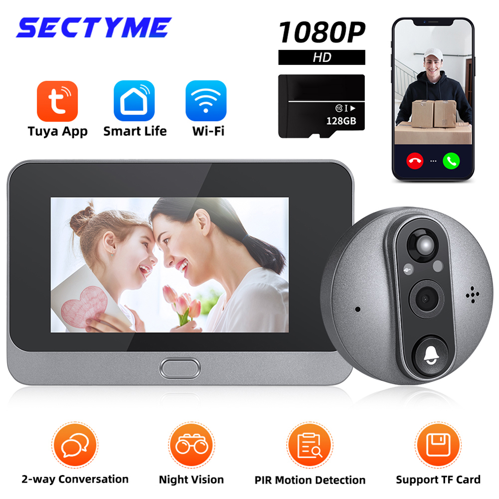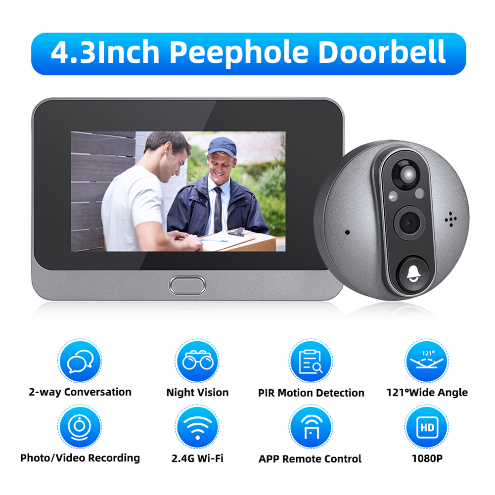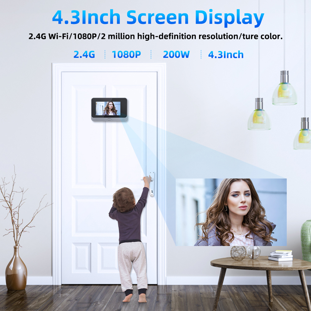 Инфракрасный цифровой дверной глазок с wi-fi, жк-дисплей 4,3 дюйма, 1080P, камера для глазка, 2-стороннее аудио, пик, ночное видение для двери квартиры