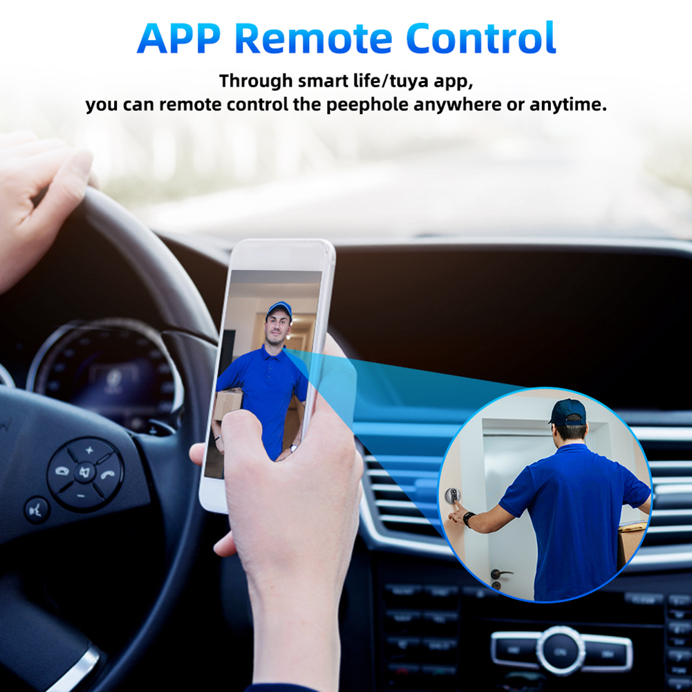 4. Удобная двусторонняя связь: Общайтесь с легкостью, не открывая дверь и не вступая в разговор лицом к лицу. Инфракрасный цифровой дверной глазок с функцией двусторонней связи позволяет инструктировать персонал доставки по размещению посылок или предупреждать незнакомцев, воров и подглядывающих, чтобы они держались подальше от вашего дома.