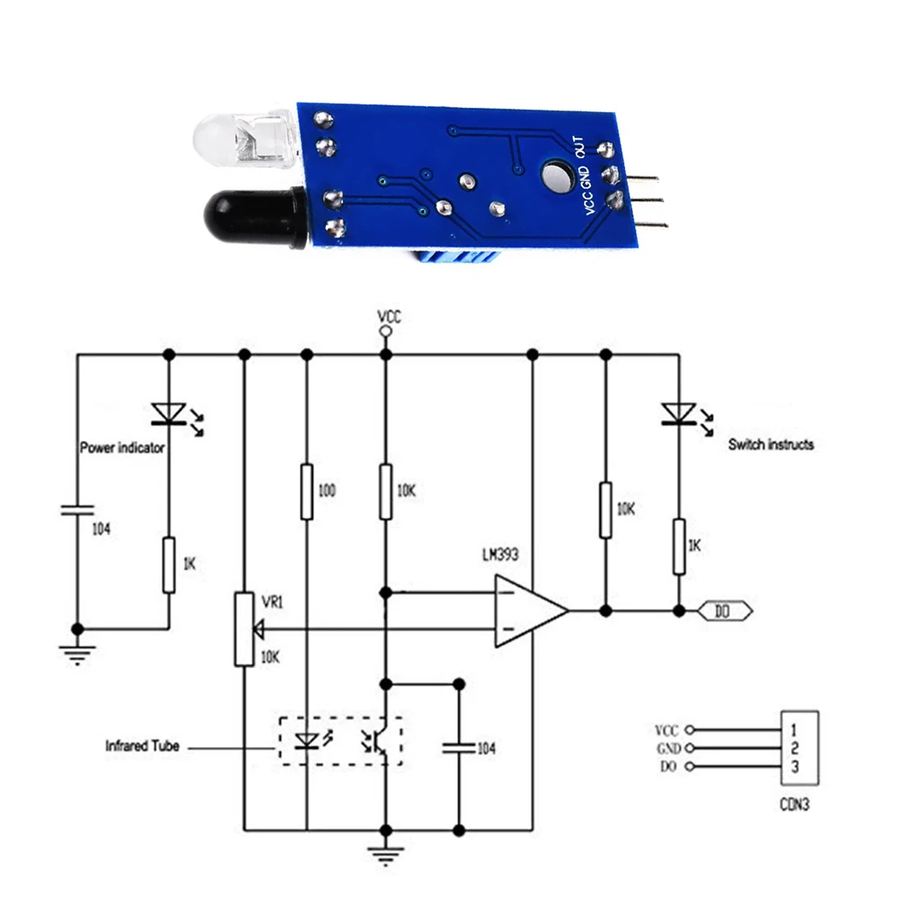 Модуль датчика, адаптируемый к окружающему свету, имеющий пару инфракрасных излучающих и приемных трубок, передающие трубки излучают инфракрасное излучение определенной частоты при обнаружении направления препятствия (отражающая поверхность), отраженное инфракрасное излучение принимается приемной трубкой, после обработки схемы компаратора горит зеленый свет, Но выходной цифровой сигнал интерфейса вывода сигнала (сигнал низкого уровня), вы можете отрегулировать потенциометр ручки расстояния обнаружения, эффективный диапазон расстояния 2 ~ 30 см, рабочее напряжение 3,3-5 В. Дальность обнаружения датчика может быть получена путем регулировки потенциометра, с небольшими помехами, проста в сборке, проста в использовании функций, может широко использоваться для предотвращения препятствий робота, избегания автомобиля, подсчета линий, и отслеживание черно-белой линии и многие другие случаи.
