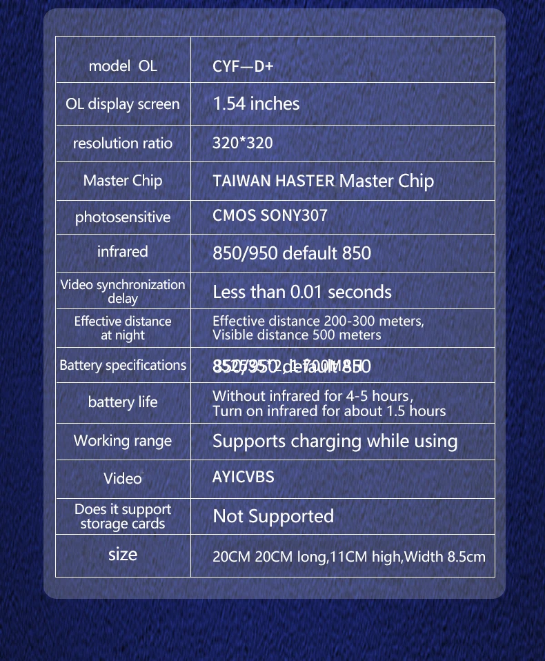 8. Срок службы батареи: 4-5 часов без инфракрасного излучения, около 1,5 часов с инфракрасным излучением.