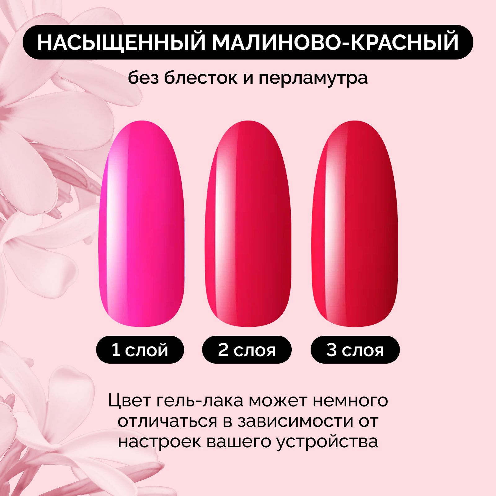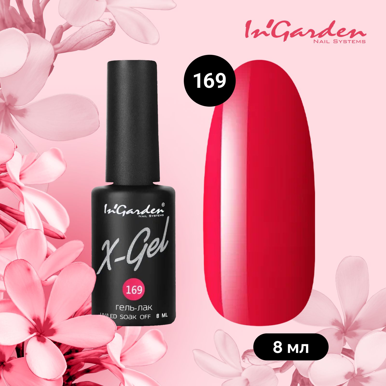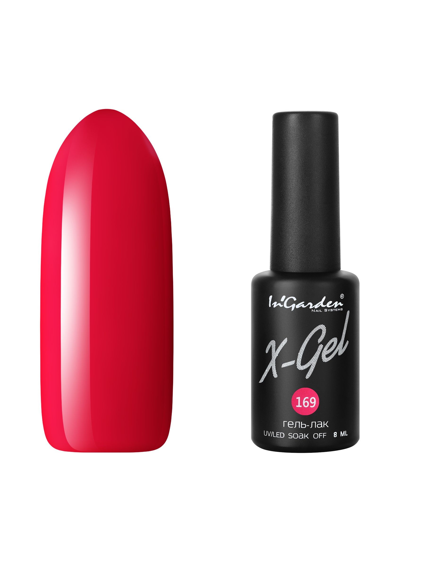 InGarden X-Gel Гель лак для ногтей №169 шеллак, уф гельлак, насыщенный малиново-красный, без блесток и перламутра, плотный, 8 мл