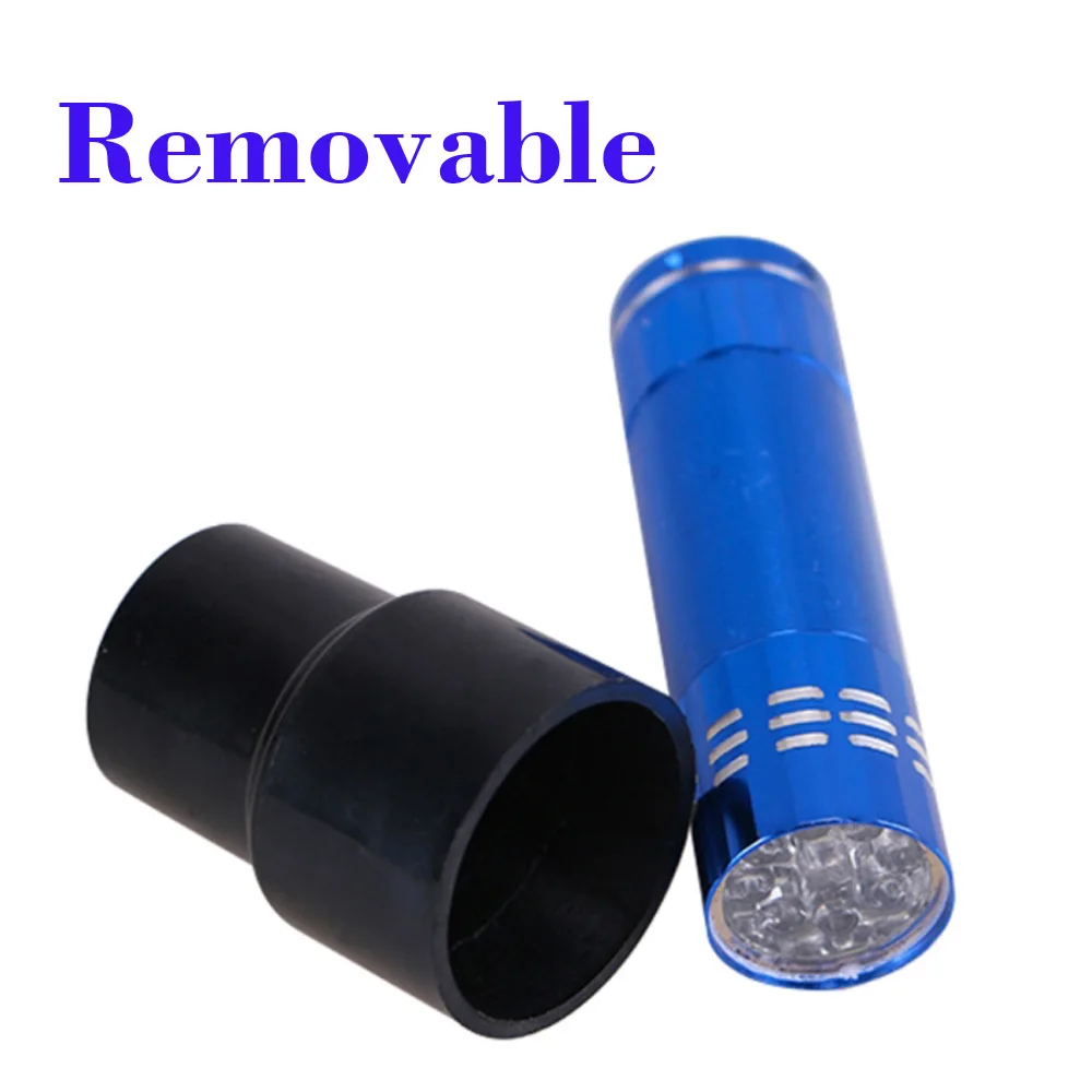Ручка лампы черная и сделана из алюминия для прочности. Съемный капюшон изготовлен из черного пластика. Лампа принимает батарейки AAA (не поставляются)