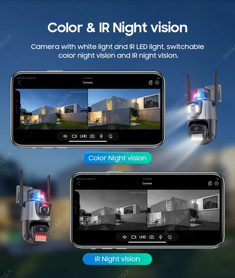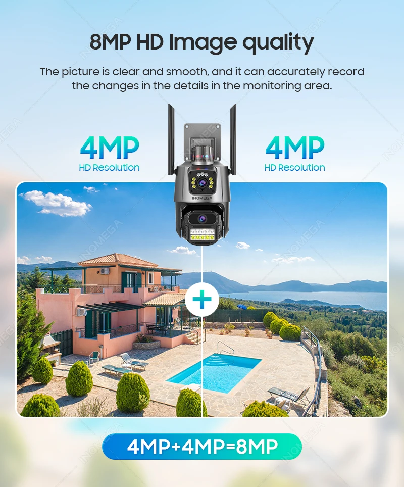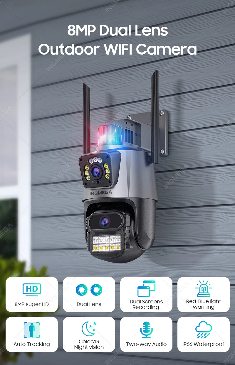 INQMEGA 4K 8M IP-камера P Угловая панорамная WIFI Двойной объектив AI Обнаружение человека WIFI Камеры наблюдения для двора