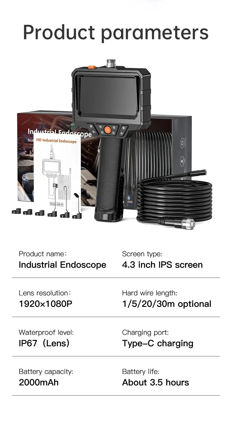 Ручной дизайн:Эндоскоп предназначен для переноски, что позволяет легко и удобно использовать его во время осмотров.