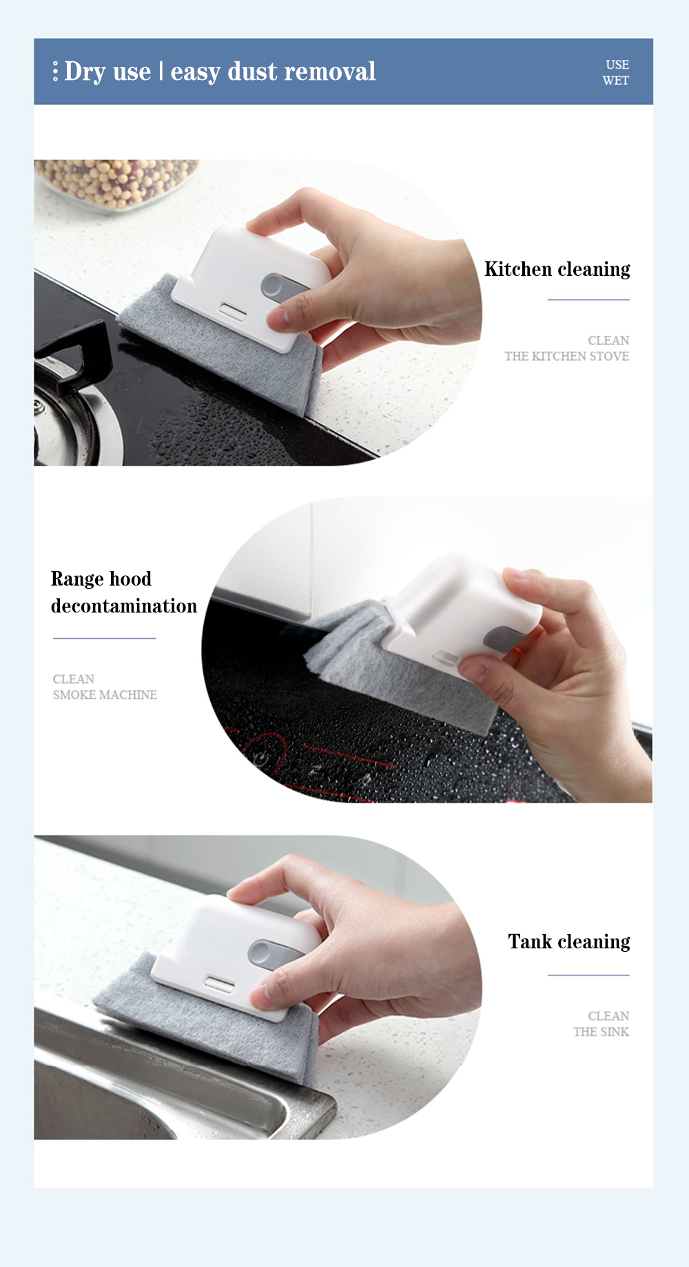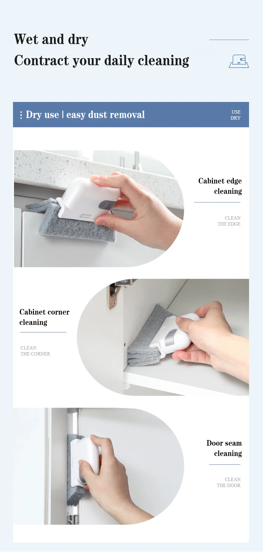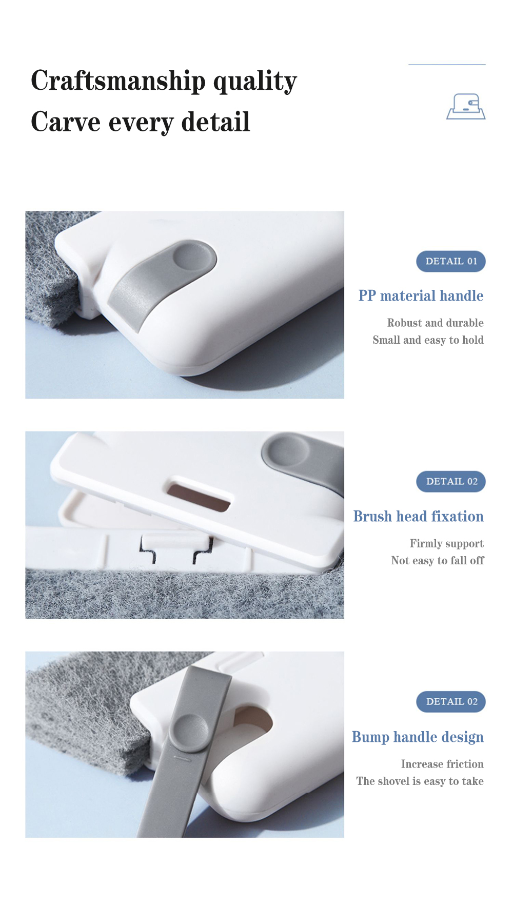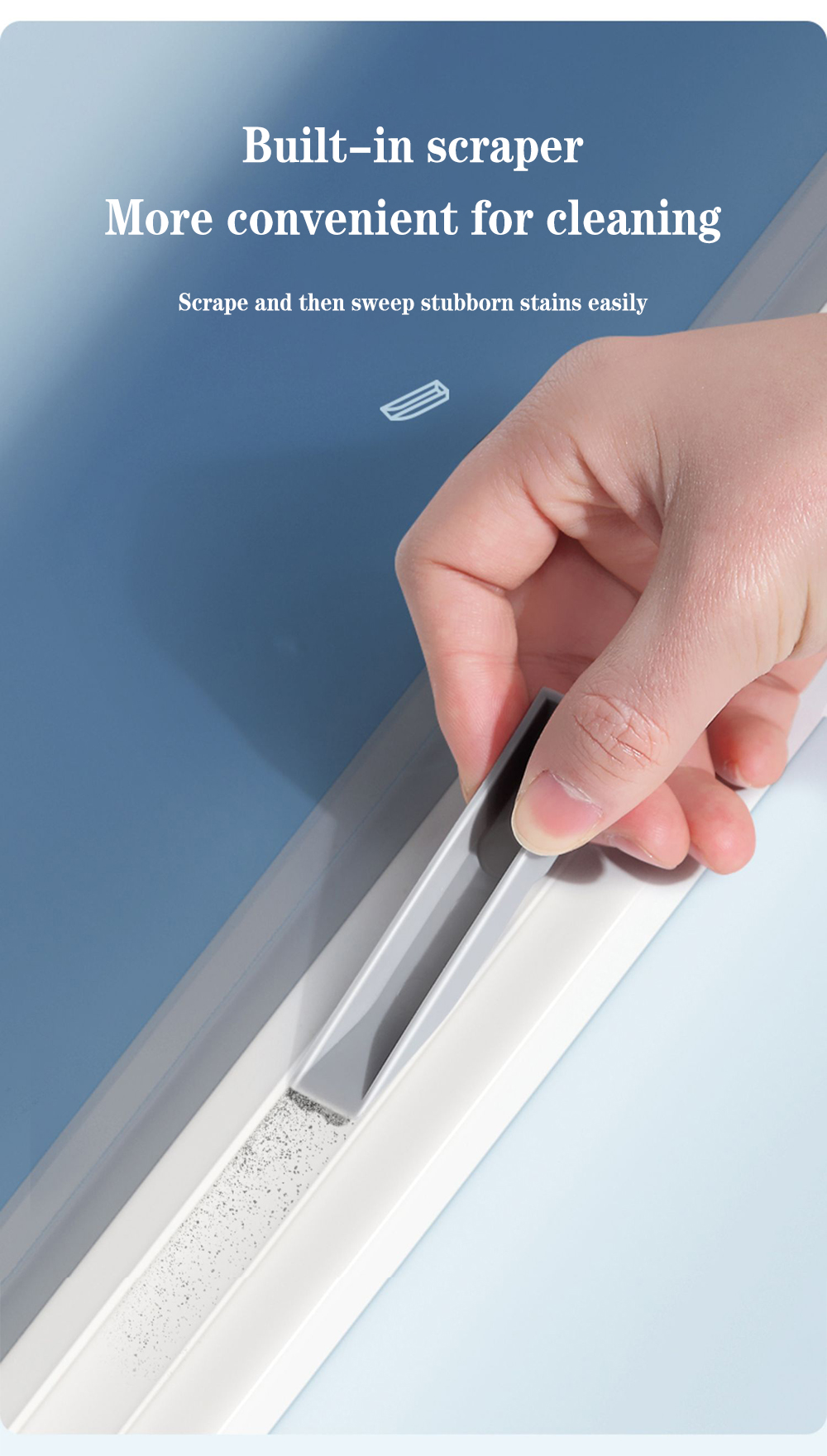2 в 1 бытовой совок и зажим для кисти для удобного хранения и использования. Легко моется в труднодоступных местах и небольших зазоров/вентиляционных отверстий.