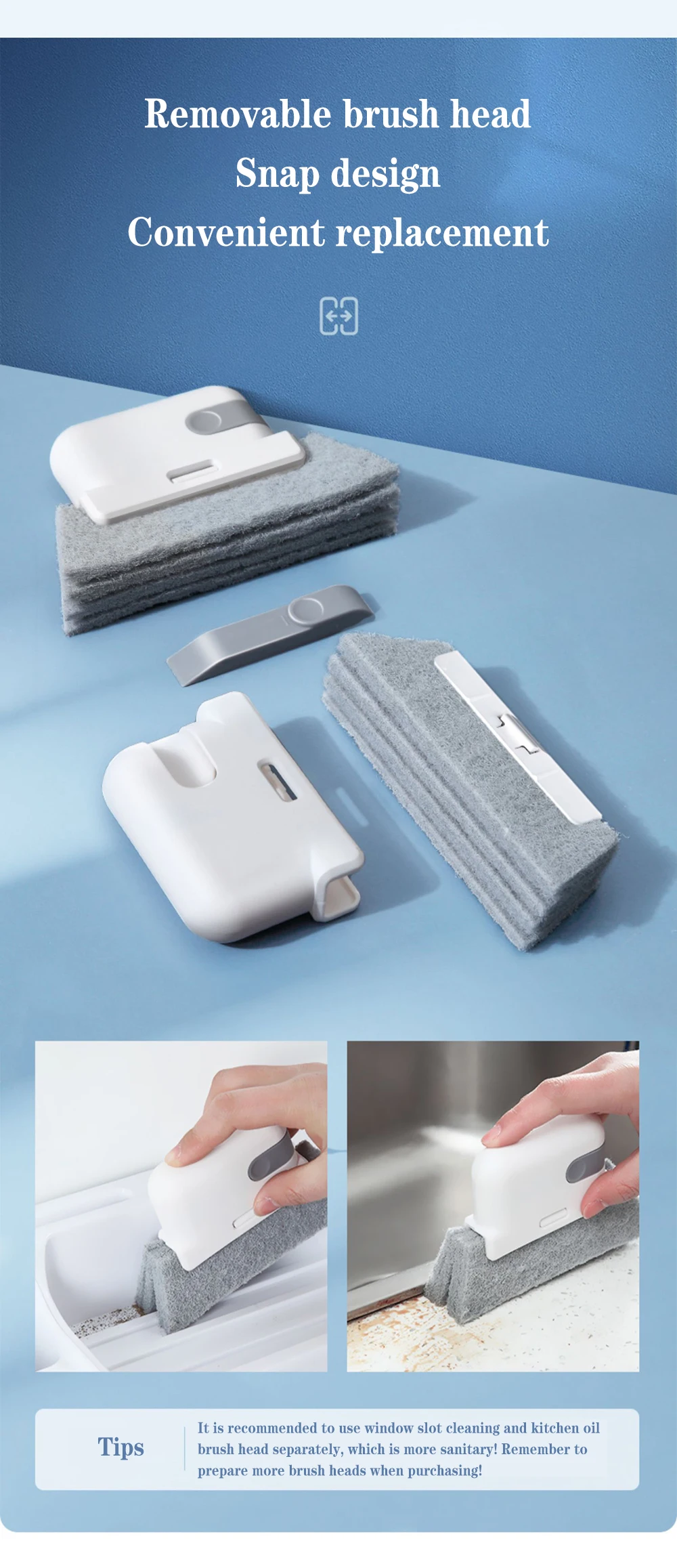 Щетка для чистки имеет съемный дизайн пряжки, который легко чистить, головка щетки легко заменить, кисть более гигиенична, Кисть может быть подвешена и храниться, И чистка более удобна.