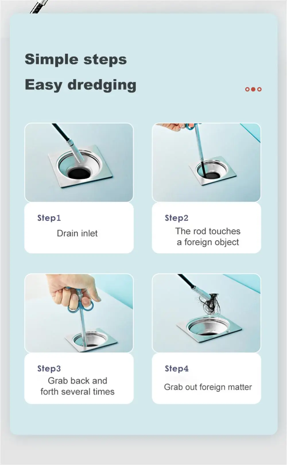 Он может вынуть золотые и серебряные украшения и волосы из Слива пола. Очень подходит для уборки ванных комнат, кухонь, раковин, ванн, труб, канализационных труб, канализационных труб и других мест, которые часто блокируются. Многозубная сливная змея эффективно улавливает волосы, продукты питания и другие закупорки.