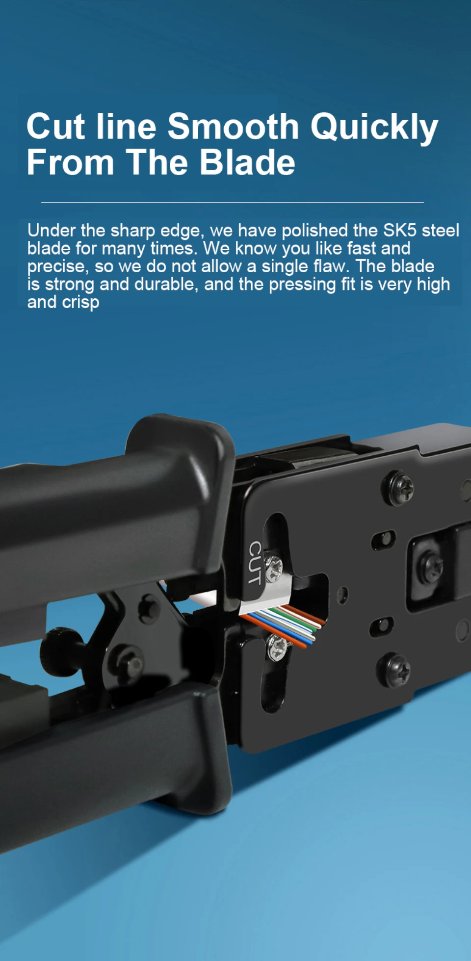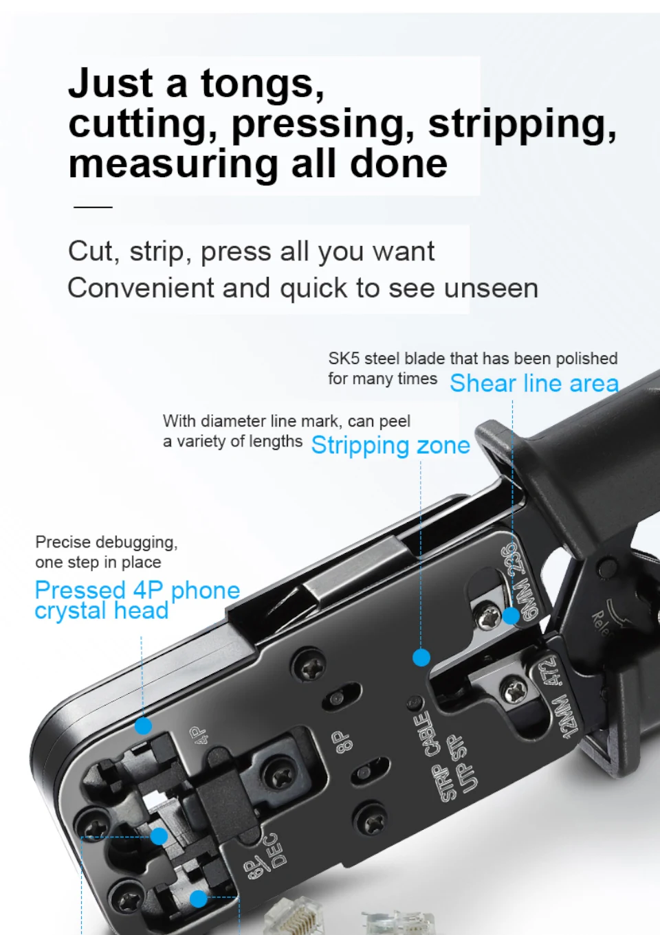 Порт для зачистки проводов имеет отметку диаметра, которая может зачистить несколько типов проводов, таких как круглые плоские сетевые кабели/телефонные кабели.