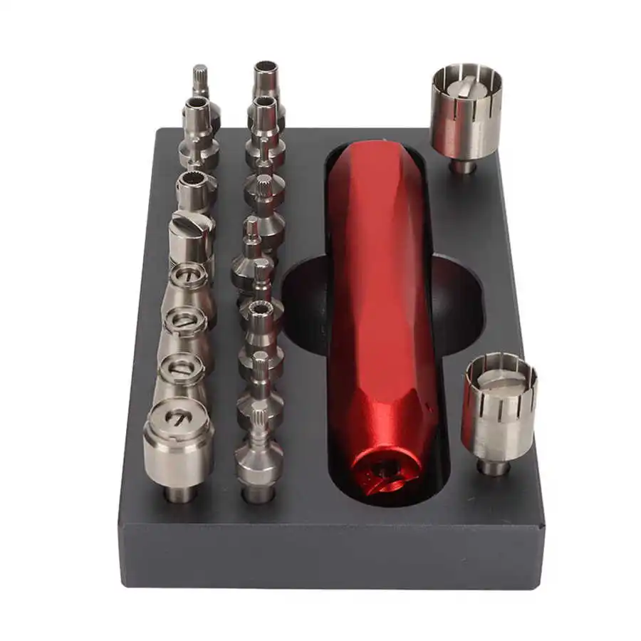 2. Ручка и основание: Этот Съемник Заводной трубки часов оснащен нескользящей красной ручкой и основанием, более удобными в эксплуатации.