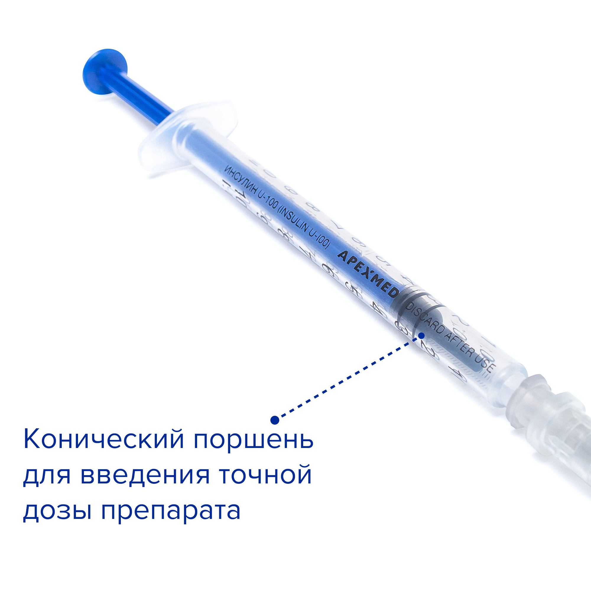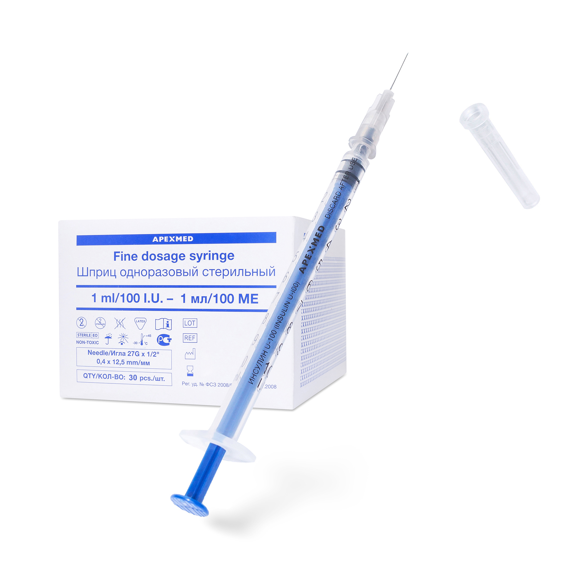 Инсулиновый шприц с иглой Apexmed 1 мл, 30 шт, трехкомпонентный, одноразовый, для внутривенных и внутримышечных инъекций и уколов