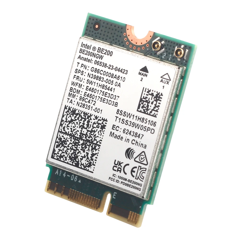 Intel BE200 Bluetooth 5,4 Wi-Fi 7 Карта BE200NGW 2,4/5/ 6 ГГц 5,8 Гбит/с, бесшумный адаптер для Windows 11, настольного ПК с антеннами