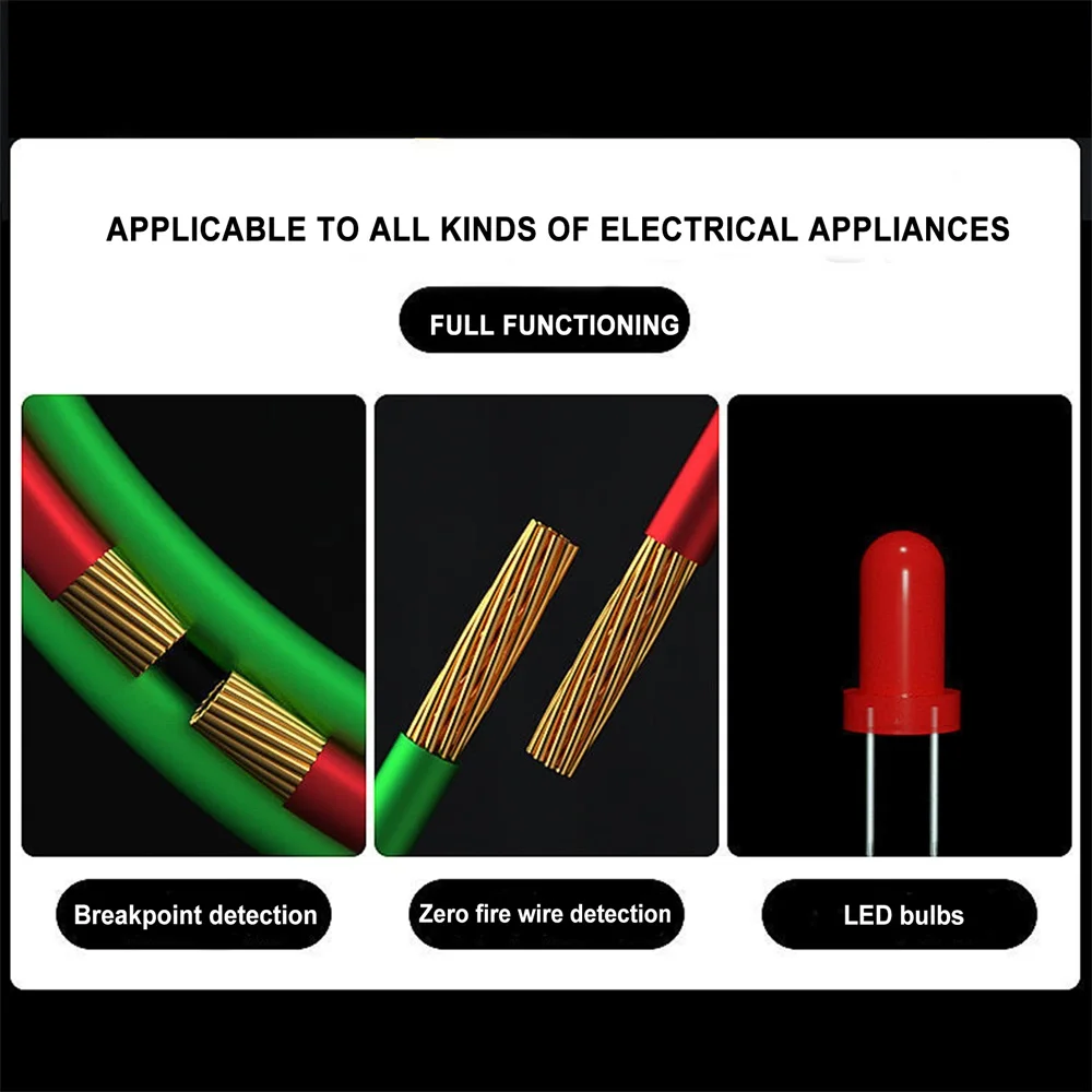 1. Обнаружение нейтрального/живого провода: светодиодный результаты тестирования красный светильник зеленый светильник означает живое провода, зеленый светильник означает нейтральный провод