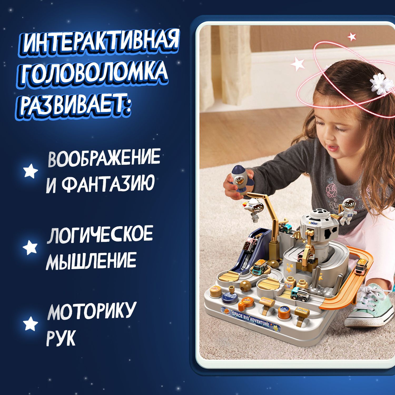 Интерактивная игрушка, трек с машинками для мальчиков и девочек, гоночный автотрек (космос) для развития мелкой моторики, логики и координации