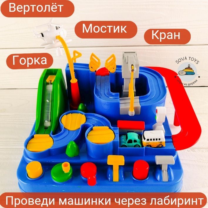 Интерактивный механический автотрек с машинками, настольная развивающая игра для детей от 3 лет
