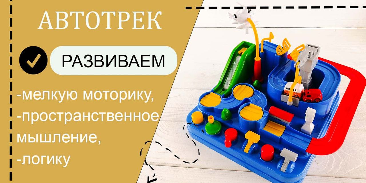 Описание: Как игратьЭта игра станет идеальным подарком и мальчику, и девочке! Нужно не просто провести машинку по треку, а нажимать на кнопочки, двигать и крутить рычаги, чтобы проходить каждый этап. Поднимайте кран, опускайте мост, двигайте платформы и спешите к финишу.Подвижный лабиринтВ игре множество подвижных элементов, через которые нужно провести машинку. Этот процесс надолго увлекает малыша, пока мама может сделать себе чай.Кому подойдет играАвтотрек станет любимой игрушкой для малышей от 3 лет. Причем играть будет интересно не только мальчикам, но и девочкам. Подарите Автотрек на День рождения, 23 февраля, 8 марта или просто так, он обязательно порадует вашего ребенка!