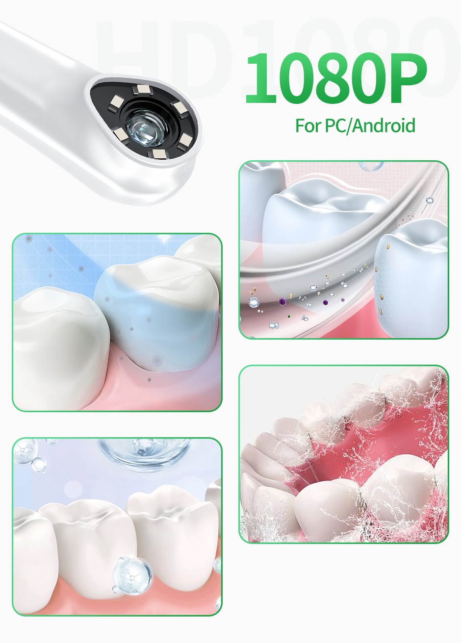 • Разрешение HD 1080P :Снимите четкие и подробные изображения ваших зубов и десен с высоким разрешением камеры.