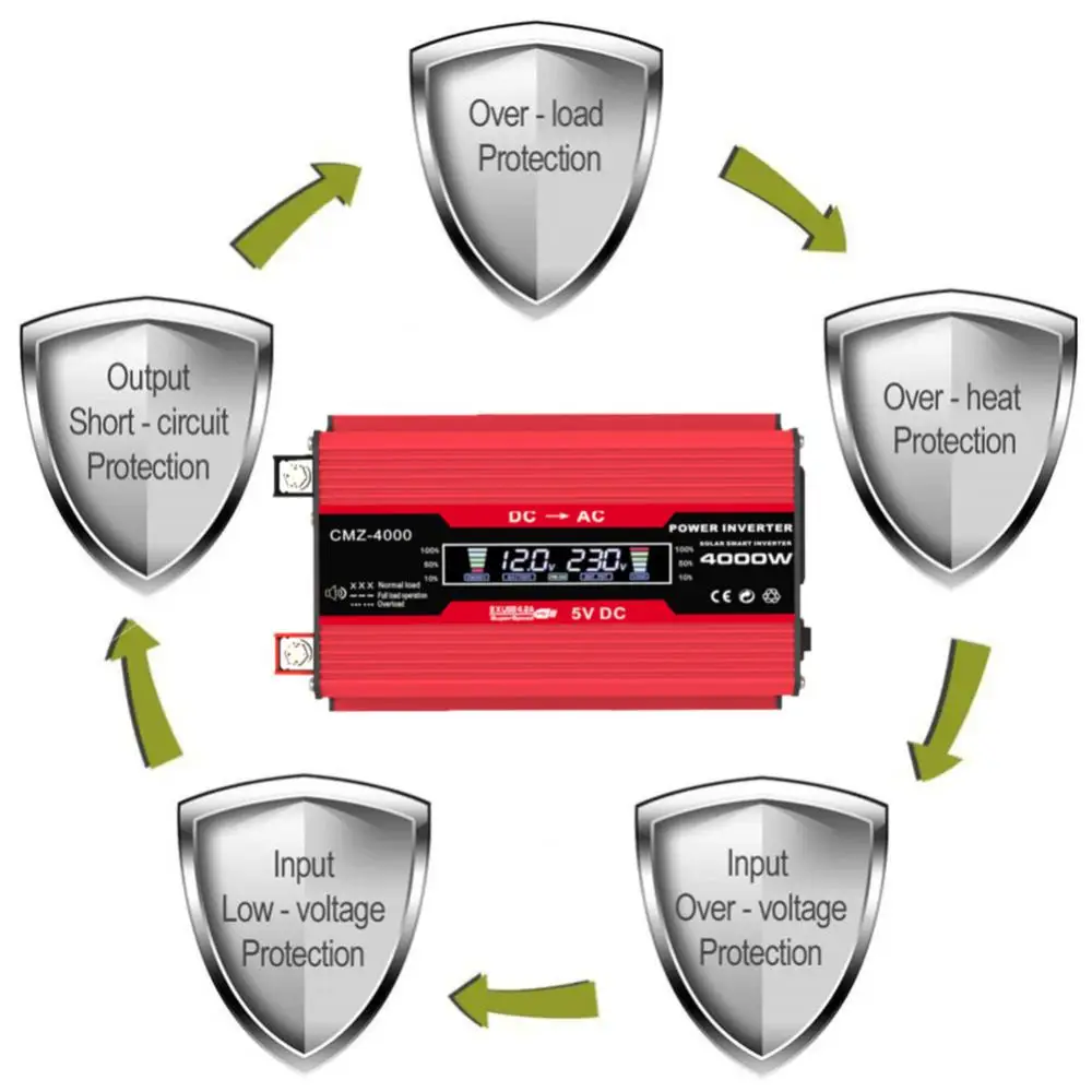 Инвертор 12v 220v чистый синус 12v Чистая синусоида 4000W DC 12V до 220V Скорость Питания пиковая Автомобильная вилка Инвертор адаптер питания