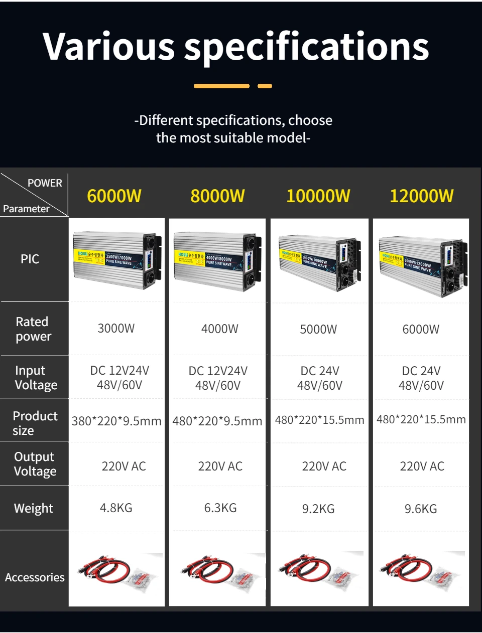 Инвертор чистый, 60 Гц, 12000 Вт, 24 В, 60 Гц