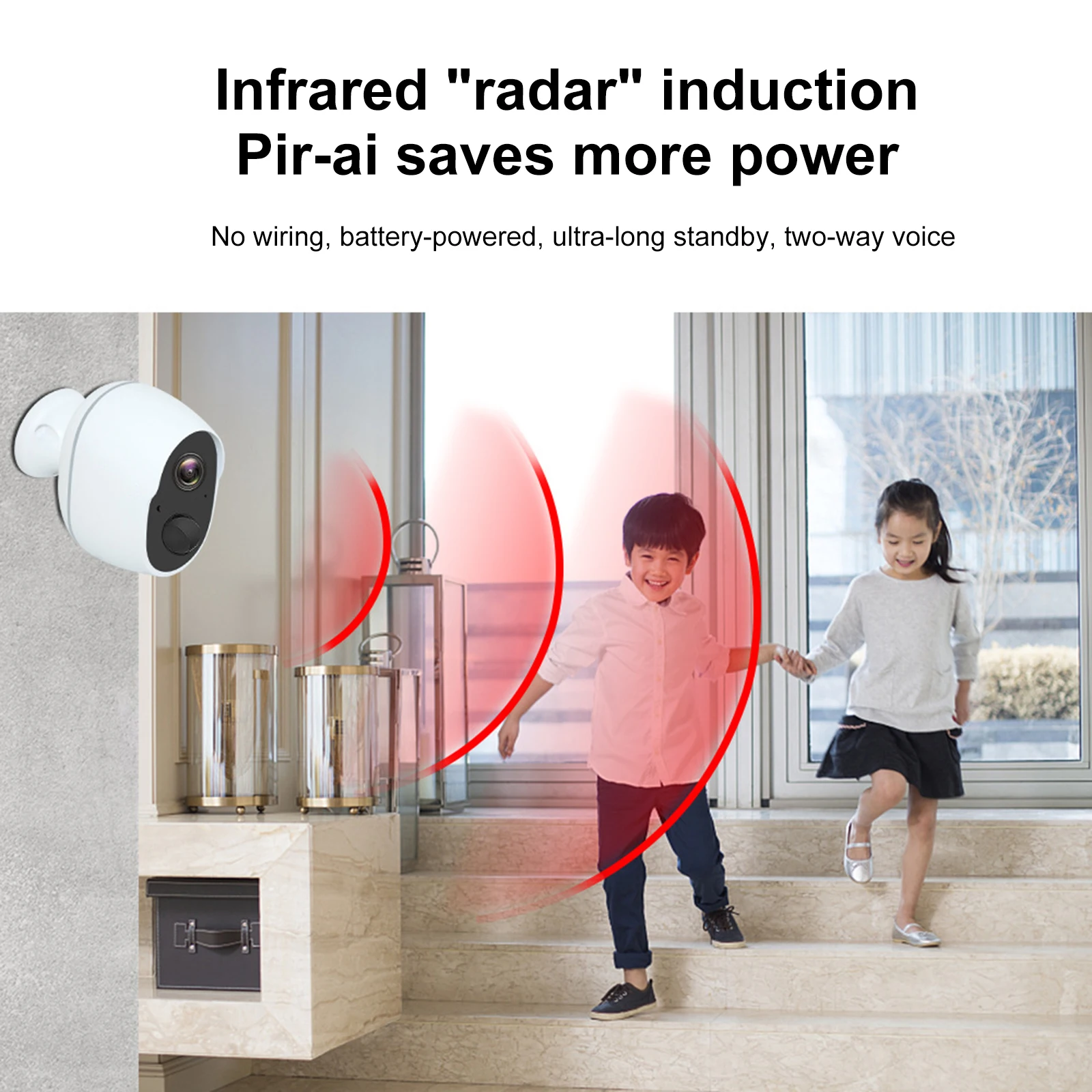 Голосовая функция:Односторонний видеовыход, двусторонний голосовой Интерком, встроенный динамик и микрофон с шумоподавлением высокой четкости, звонок между двумя сторонами не прерывается. В то же время, он поддерживает мобильное приложение для односторонних удаленных видеозвонков, что позволяет поддерживать связь с семьей и домашними животными, когда вы находитесь вне дома.