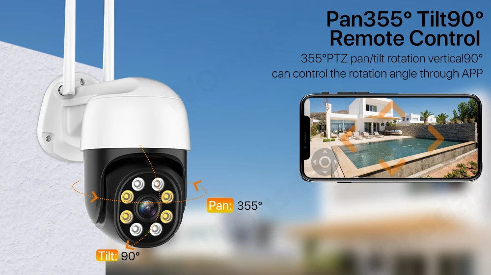 -Просматривать больше деталей или больше объектов без ущерба для качества. Камера с 355 ° по горизонтали и 90 ° по вертикали может перемещаться вверх, вниз, влево и вправо.