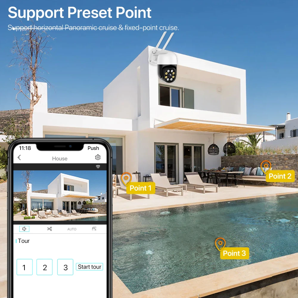 -Поддержка предустановленных точек мониторинга, можно установить до 3 предустановок круиза. Вы можете последовательно выполнять заданные и автоматические круиз-команды для достижения цели мониторинга фиксированных точек.
