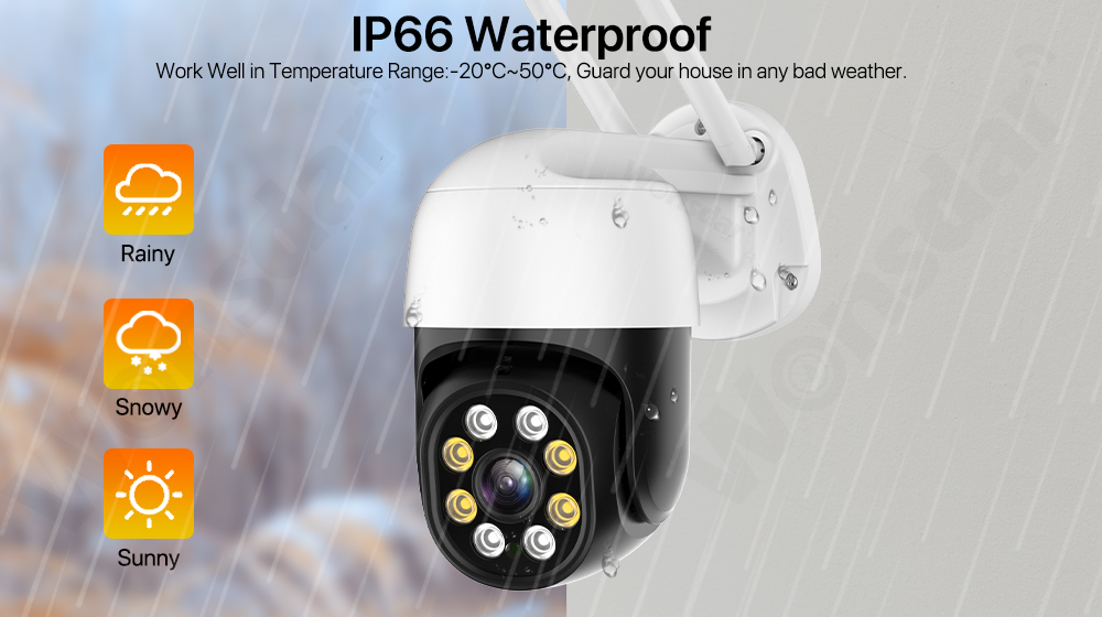 -Оснащен водонепроницаемым уровнем IP66, чтобы камера выдержала различные суровые условия. Рабочая температура-20 ° ~ 50 °, вы можете абсолютно легко положить его на улицу