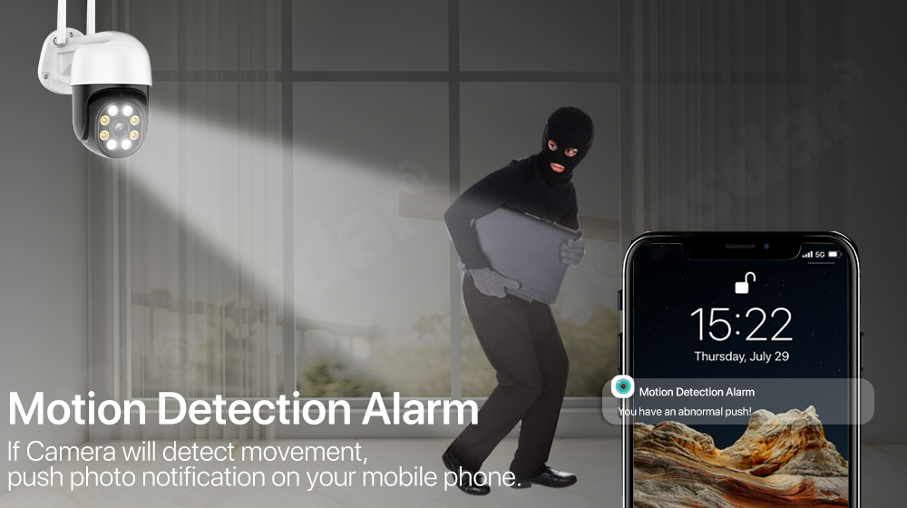 -Защитите свой дом каждый день, при обнаружении движения уведомление о тревоге будет быстро отправлено на ваш телефон.