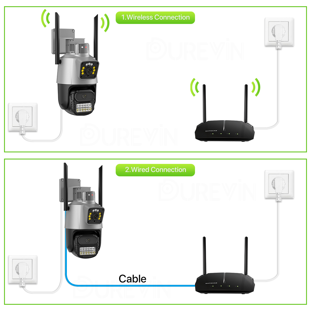 Вы можете выбрать удобное соединение по желанию. Иногда у вас может быть только один способ подключения камеры, не волнуйтесь, эта камера поддерживает беспроводное и проводное соединение одновременно.