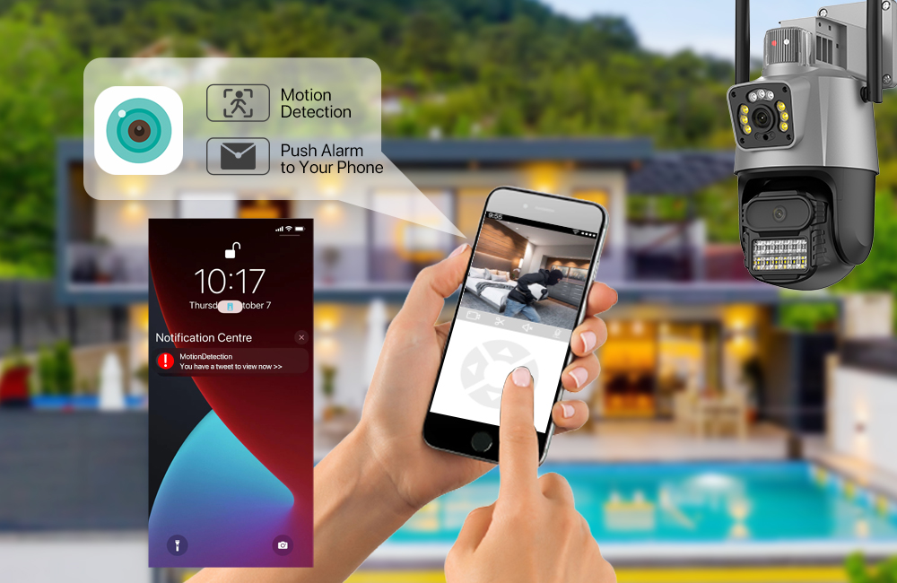 При обнаружении движения камера наблюдения немедленно подает сигнал тревоги, отправляя оповещения и push-уведомления на ваше устройство.