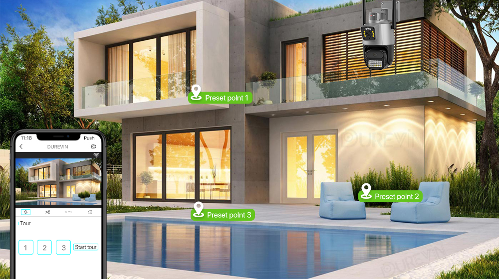 Поддержка существующих точек мониторинга и до 3 круизных подарков может быть установлена. Вы можете последовательно выполнять заданные и автоматические круиз-команды для достижения цели мониторинга фиксированной точки.