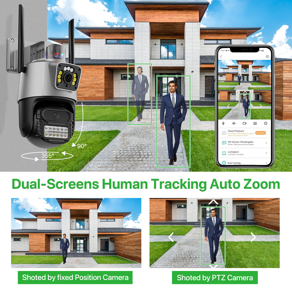 Чтобы по-настоящему добиться просмотра обоих экранов в реальном времени, вы можете повернуть объектив 3,6 + 6 мм PTZ-камера переместится в указанное положение.