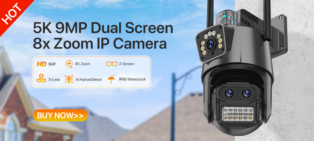 IP-камера 9 МП, 5K, HD, Wi-Fi, 8-кратный зум, три объектива, двойной экран, PTZ