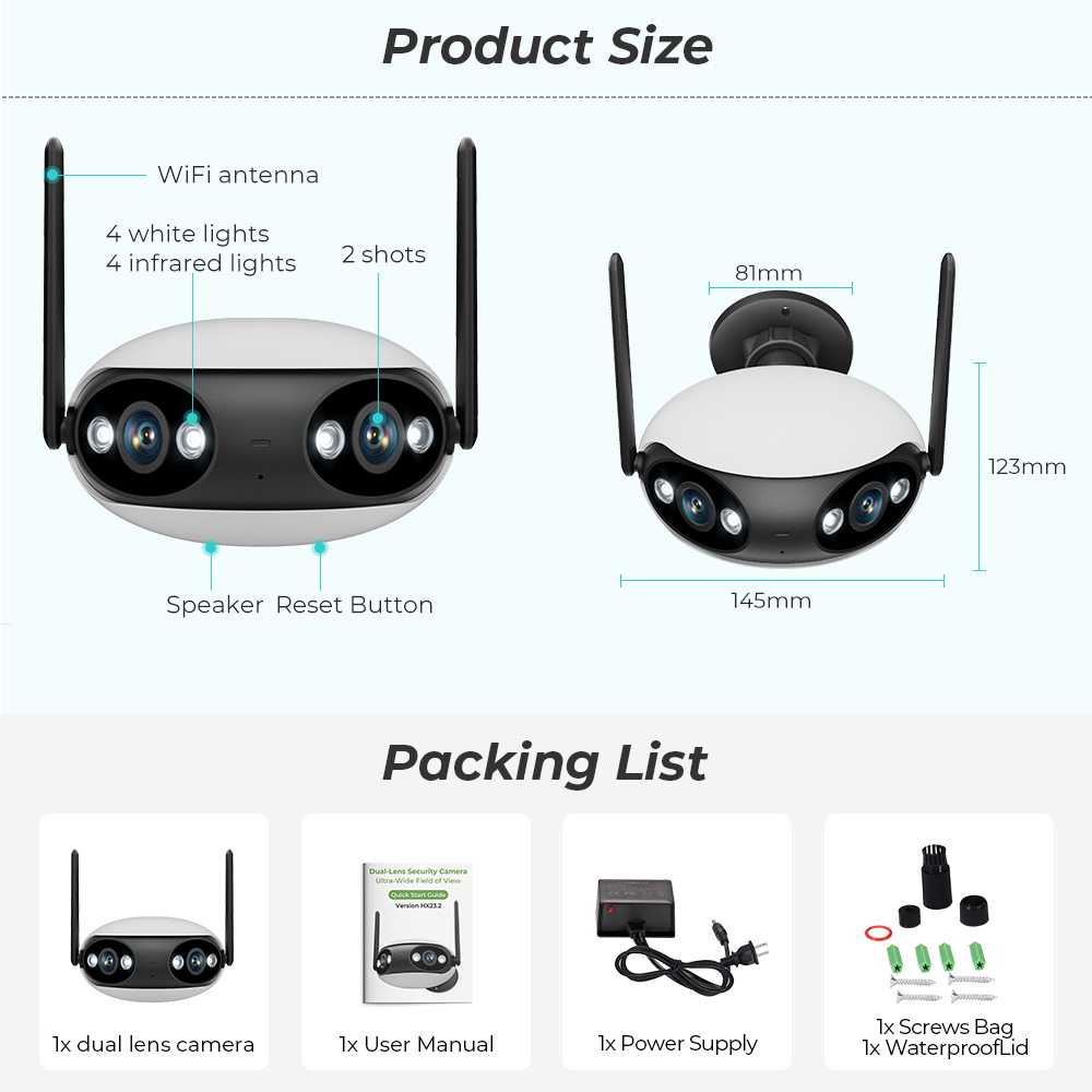 ⑤ Камера имеет Водонепроницаемость IP66 и защиту от слоев, которую можно использовать на открытом воздухе.