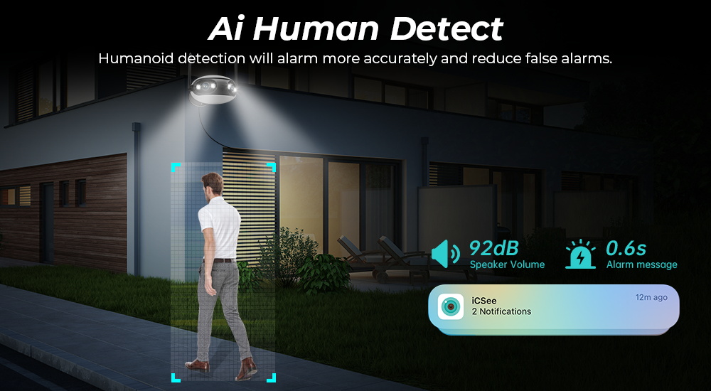 Быстро находит человеческие цели и немедленно отправляет уведомление на ваш телефон, позволяя вам видеть, что происходит где угодно.