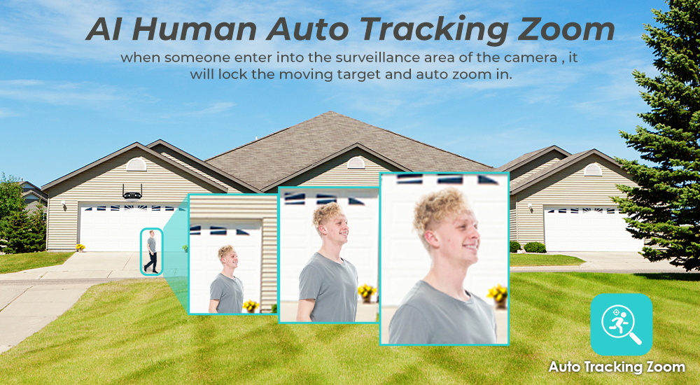 Когда кто-то входит в зону наблюдения камеры. Он заблокирует движущуюся цель и автоматически увеличит масштаб