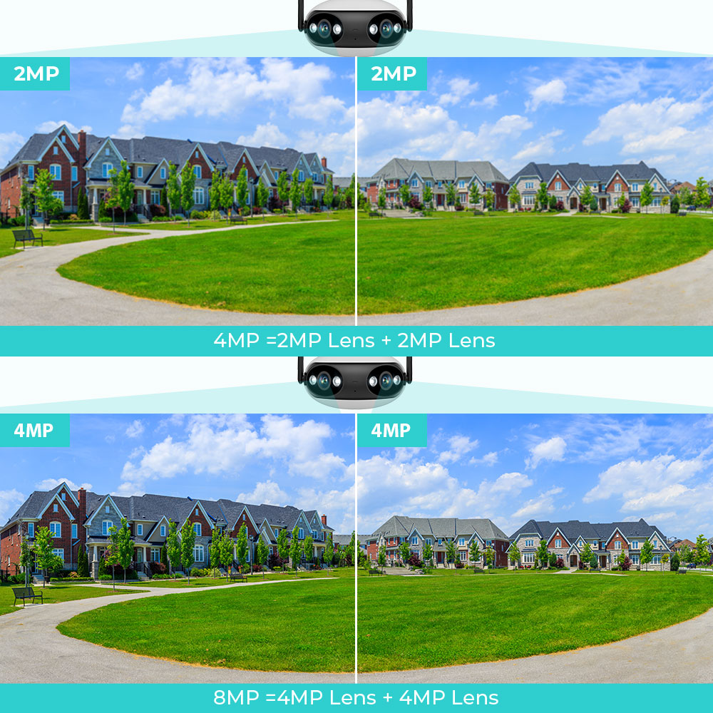 Камера с двумя объективами 4K 8MP, 4MP (один объектив) + 4MP (один объектив) = 4K 8MP (двойной объектив)