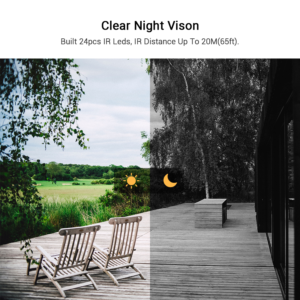 Встроенный ИК-фильтр, автоматическое переключение дневного и ночного видения, инфракрасный свет 24 шт., Расстояние ИК-ночного видения до 20 м.