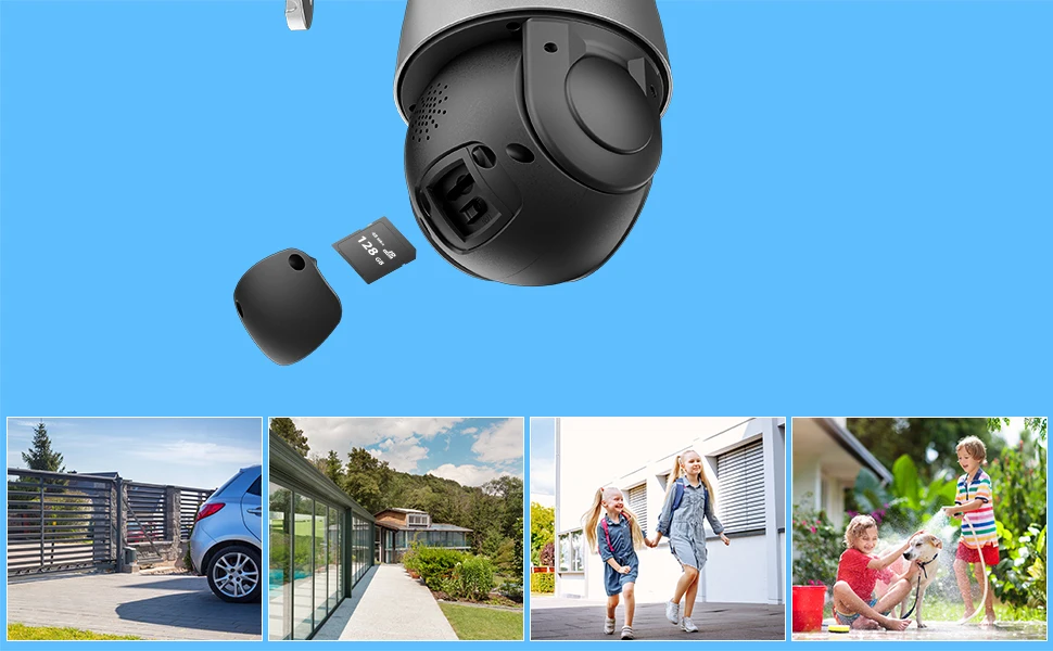 Благодаря слоту для карт Micro-TF камера видеонаблюдения Ctronics 5mp PTZ может хранить все отснятые материалы на локальную карту micro-TF (поддерживает до 128 ГБ). Затем вы можете просматривать наружную камеру видеонаблюдения удаленно со своего смартфона или компьютера (Android/IOS/Windows/Mac OS).