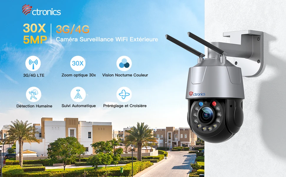 IP-камера Ctronics, уличная панорамная камера видеонаблюдения с функцией ночного видения, 4G, LTE, 30-кратный зум, 5 МП, PTZ, 50 м