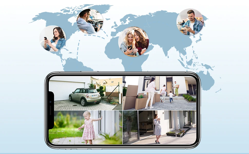 Если вы приобрели более одной камеры видеонаблюдения Ctronics, вы можете одновременно смотреть до 4 каналов мониторинга на одном экране. Ваш мобильный телефон позволяет вам видеть все свое окружение в одном месте, не пропуская никакой важной информации.