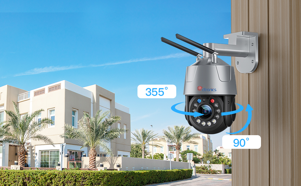 Благодаря функциям панорамирования 355 ° и наклона 90 ° эта наружная камера видеонаблюдения может контролировать любой угол вашей собственности. Вы можете вручную поворачивать объектив камеры вверх, вниз, влево и вправо со смартфона и свободно менять положение объектива.
