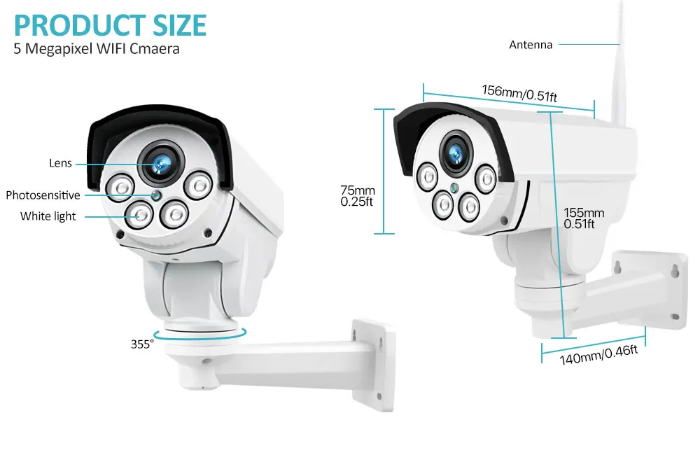 Наружная камера 5 МП: сверхвысокое разрешение 2560x1920, ваша наружная камера IP-наблюдения может поддерживать ночное видение на большом расстоянии в темноте, она очень подходит для парковок, гаражей, задних дворов, передние дворы и другие большие площади.