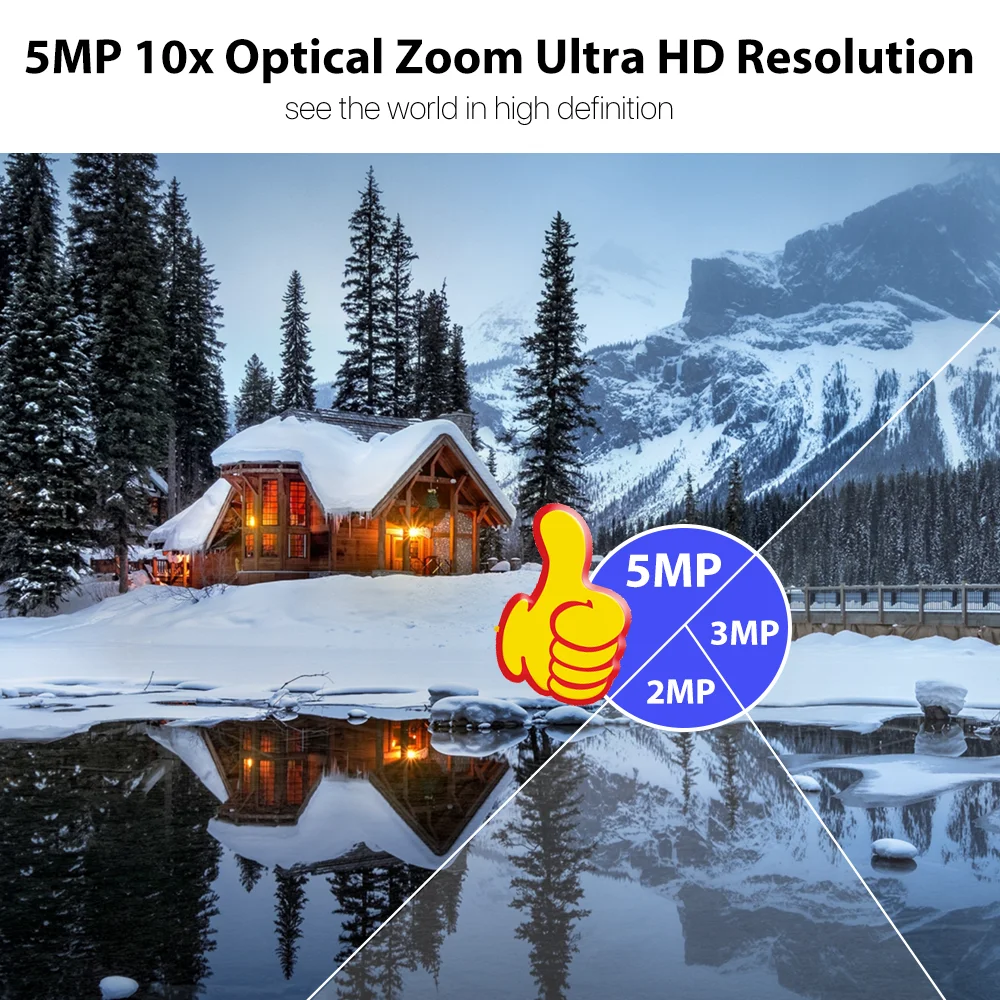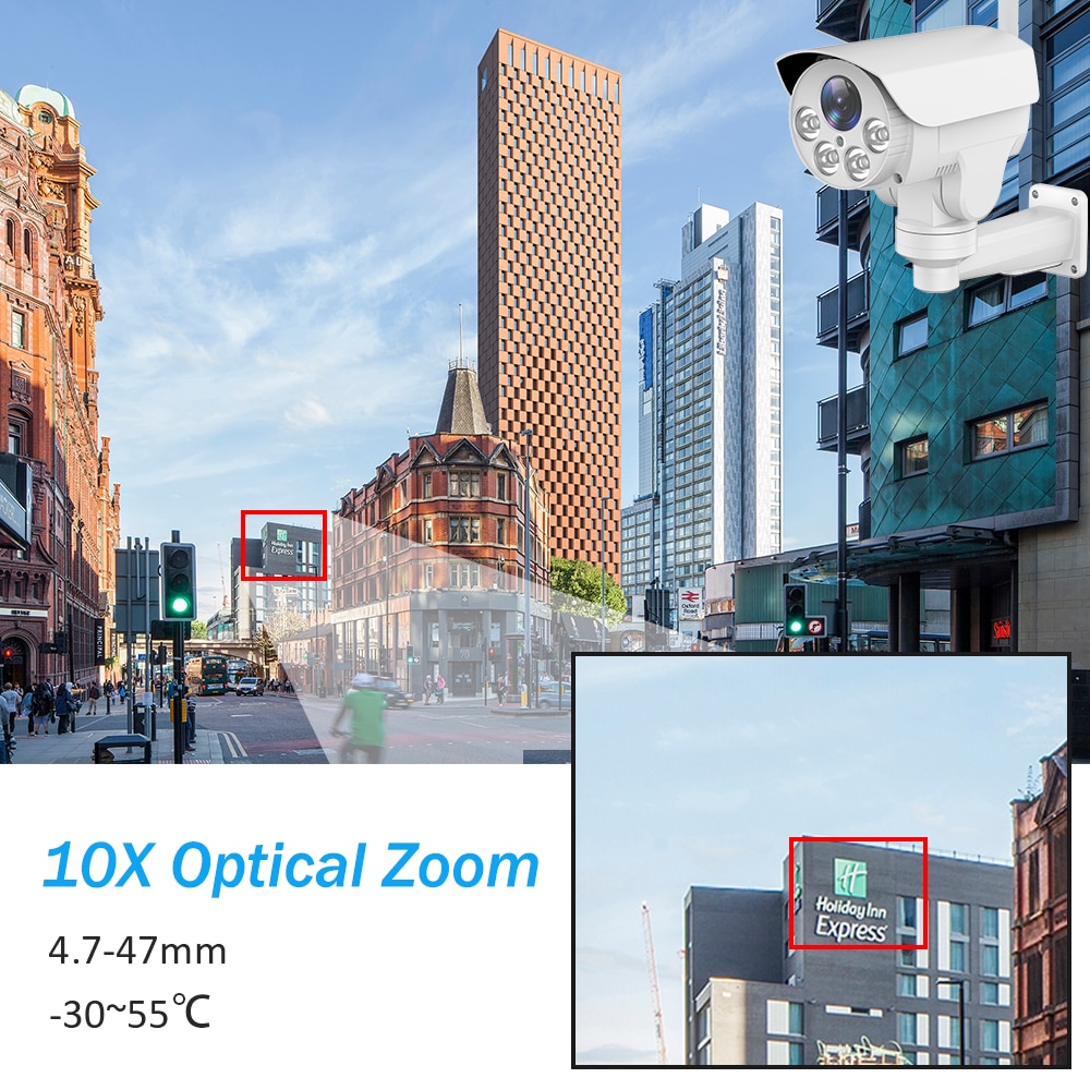 Моторизованный зум-объектив с функцией автофокусировки в пулевой Камере видеонаблюдения с 10-кратным оптическим зумом может обеспечить широкий угол обзора. Это позволяет увеличить масштаб, чтобы увидеть больше деталей большего количества объектов, не приближаясь, или уменьшить масштаб, чтобы получить все больший и больший вид.