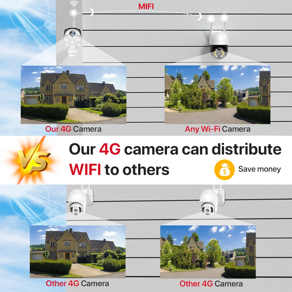 -Камера 4G может распространять MIFI на любую работу с подключением камеры WIFI.
