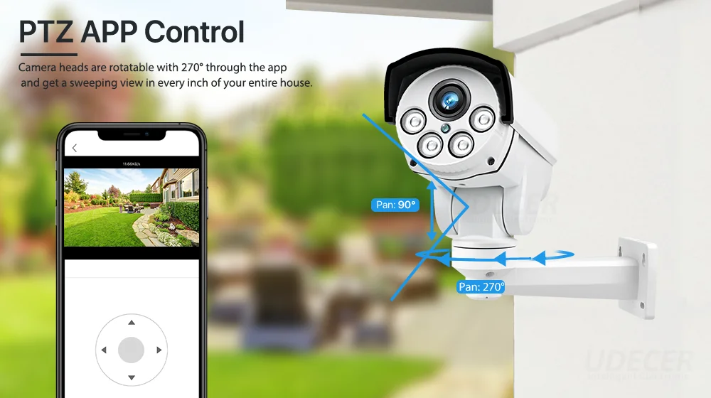 Камера Pan-Tilt-Zoom с функцией круиза может охватывать Диапазон поворота 270 ° по горизонтали и 90 ° по вертикали.