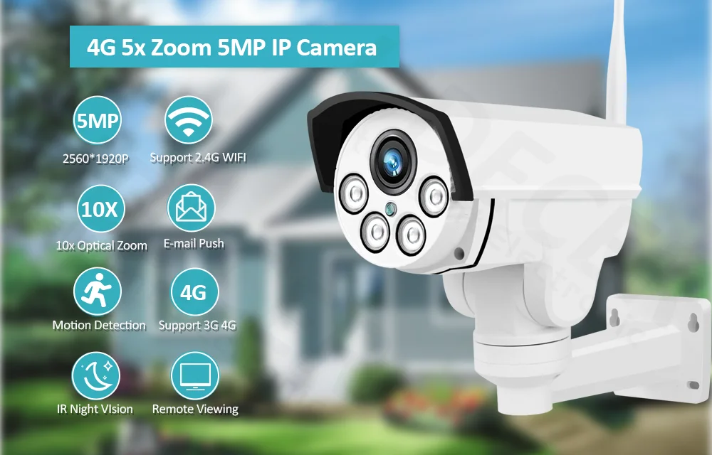 IP-камера для систем видеонаблюдения, 5 Мп, HD, 4G, SIM-карта, PTZ, 10X оптический зум, автофокус