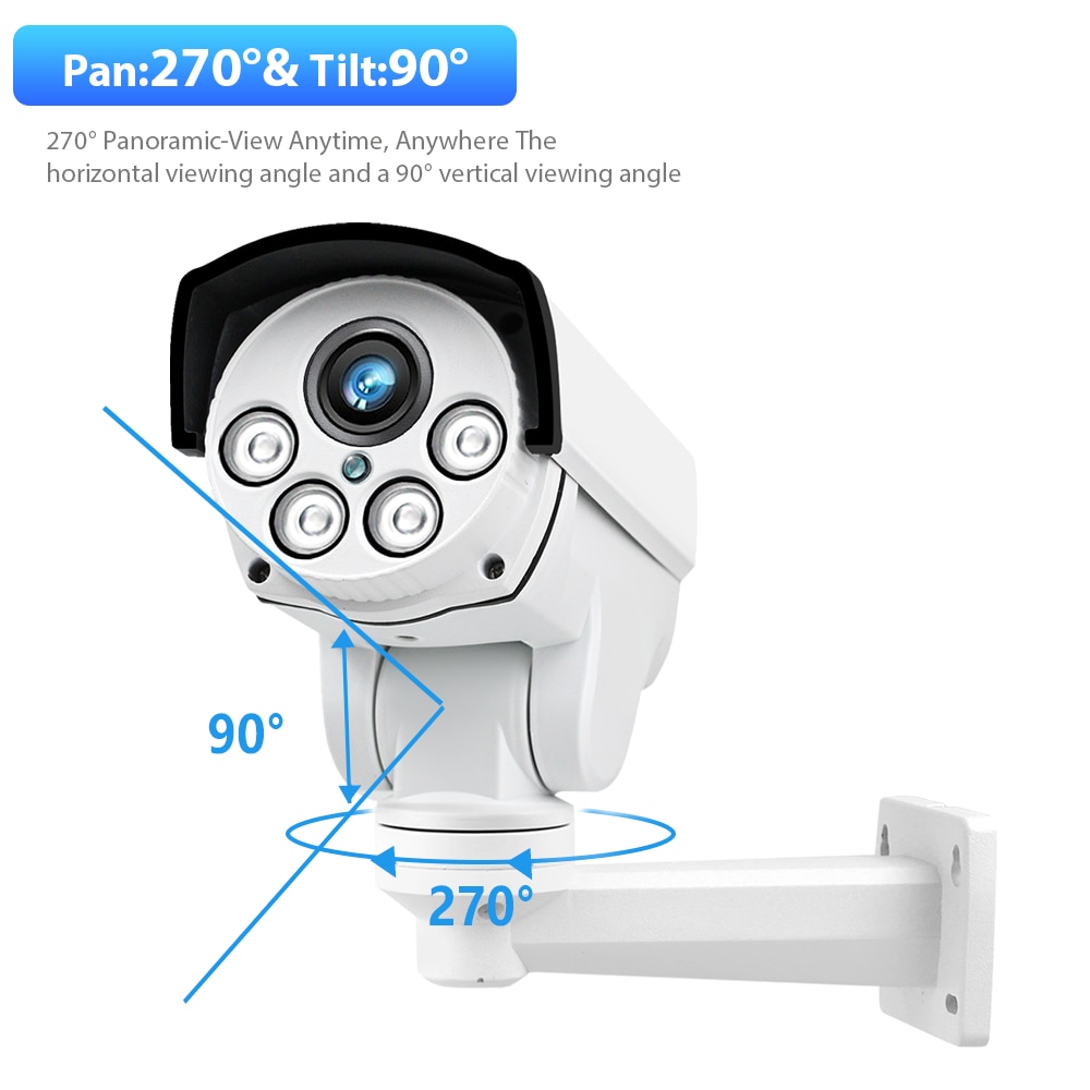 Support PAN TILT Rotate Horizon: 270°, Vertical: 90°
