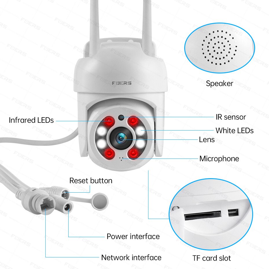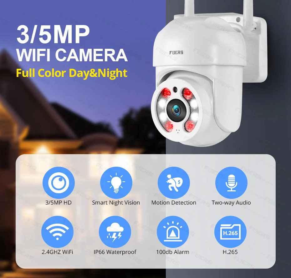 Наружная камера Fuers является водонепроницаемой (IP66) и позволяет использовать ее на открытом воздухе. Камера отлично работает как внутри, так и снаружи вашего дома, даже в суровых погодных условиях.
